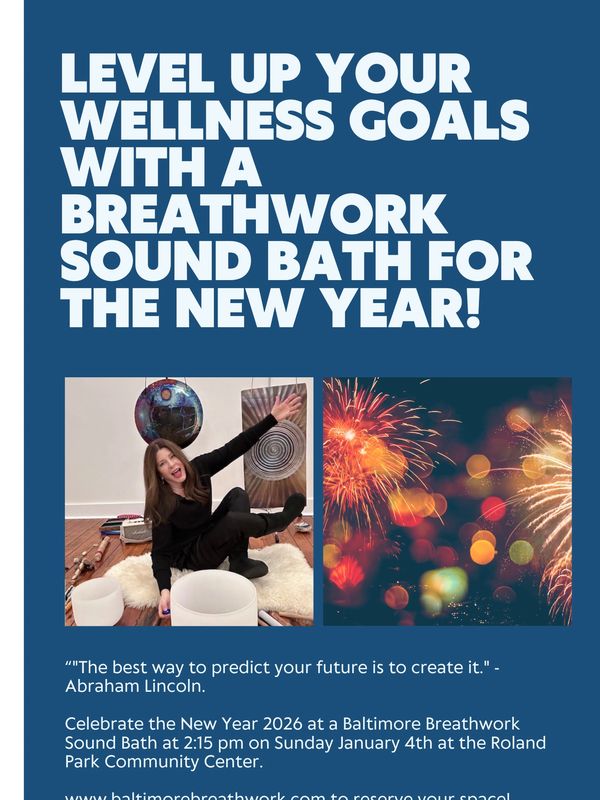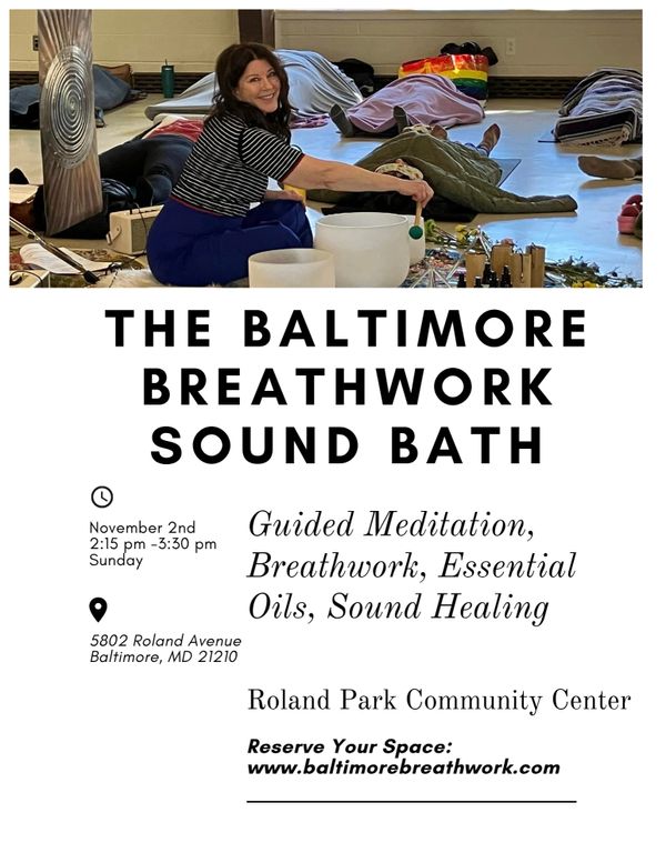 Baltimore Breathwork is a powerful transformative experience curated to music where participants can bypass the thinking mind into a deep-subconscious meditative state using breathwork, affirmations, guided imagery, and essential oils. Each breathwork class concludes with a relaxing sound bath leaving you refreshed and relaxed!