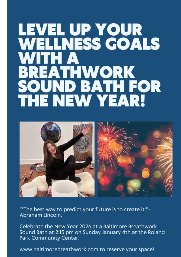 Baltimore Breathwork is a powerful transformative experience curated to music where participants can bypass the thinking mind into a deep-subconscious meditative state using breathwork, affirmations, guided imagery, and essential oils. Each breathwork class concludes with a relaxing sound bath leaving you refreshed and relaxed!